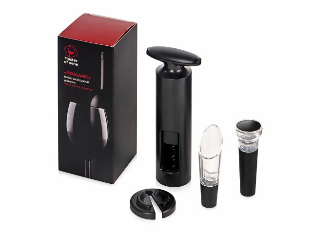 Набор «Bergamo» бренда Master of Wine состоит из ручного штопора, ножа для фольги, вакуумной пробки и аэратора. С его помощью можно откупорить напиток (нож, штопор), разлить и подготовить его к распитию, насытив кислородом (аэратор), и даже сохранить остаток в бутылке до следующего раза (пробка).