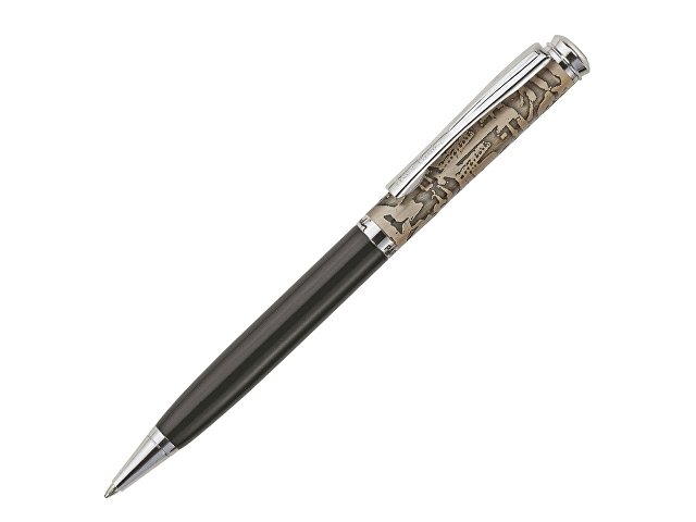 Ручка шариковая GAMME с поворотным механизмом и с гравировкой в верхней части ручки "античное серебро". Комплектуется одним синим стержнем.