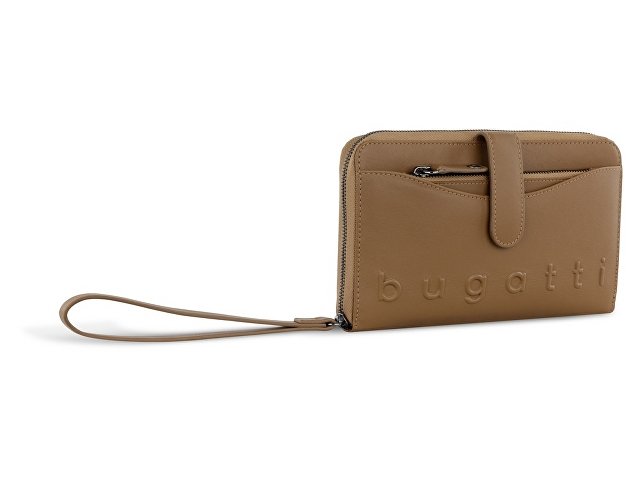 Функциональная организация: основное отделение на молнии, 12 слотов для карт, 2 отделения для купюр, 2 кармана, отделение для монет на молнии, съемная ключница, ремешок на запястье, защита данных RFID.