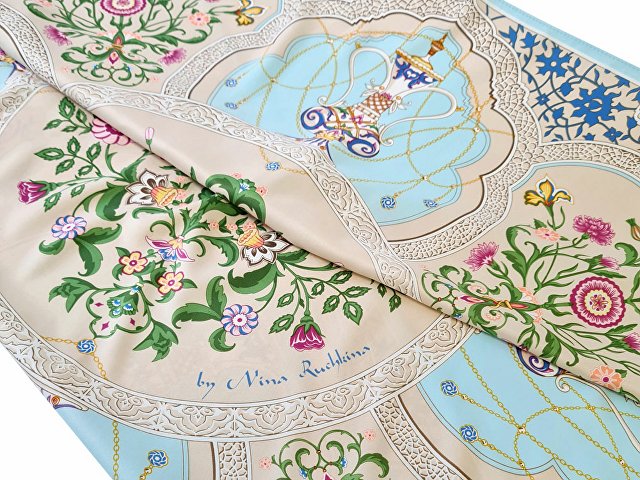 Облачившись в нежный шелковый платок с цветочным принтом от Нины Ручкиной, любая женщина может привнести в свой образ магию Востока, пленить и искусно укрощать мужские сердца.