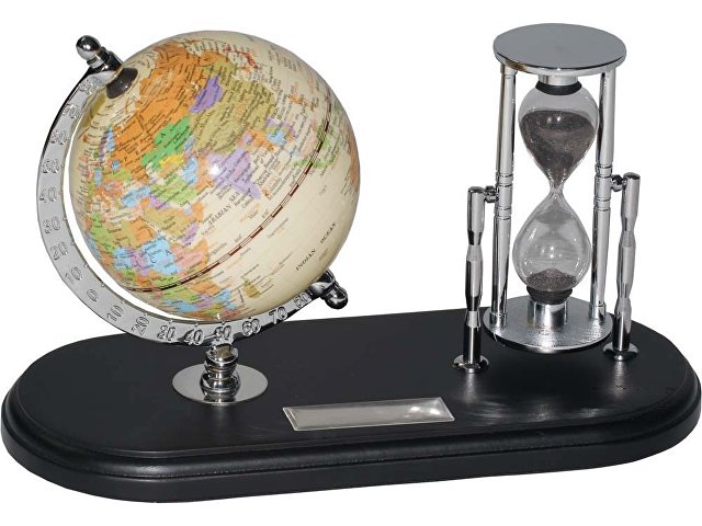 Набор с глобусом на черной подставке «Время и мы»: глобус, песочные часы (3мин.)