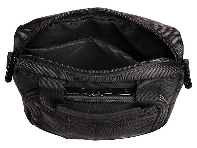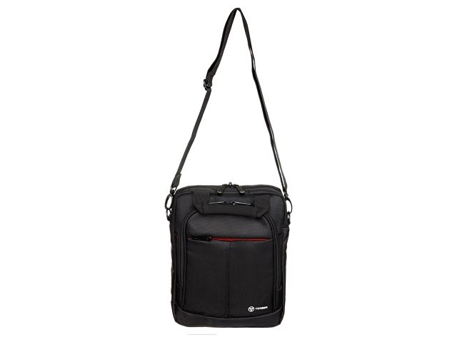 Сумка выполнена в чёрном цвете с красным акцентом, оснащена двумя внешними карманами на молнии, а также регулируемым наплечным ремнем, который позволяет подобрать оптимальную высоту для носки в соответствии с индивидуальными предпочтениями. Для удобной транспортировки предусмотрена эргономичная ручка. В основном отделении имеется мягкий карман для планшета и сетчатый карман на молнии.