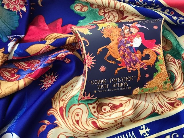 Прочитав сказку юного дарования, сам великий Александр Сергеевич Пушкин сказал: «Этот род сочинений я могу теперь оставить» - и Петр Ершов был принят в круг петербургских писателей.В этом году сказке из золотого фонда русской литературы, переведенной на все языки мира, исполняется 185 лет. Ее яркие краски мы перенесли на шелк и создали платок «Конек-Горбунок». Благодаря тонкой работе дизайнера, со страниц книги, как живые, сошли герои любимой с детства истории: Иван, прекрасная Царь-девица и волшебный Конек-Горбунок. А в роскошных орнаментах сплелись легендарное перо Жар-птицы, Красное Солнышко и Месяц…