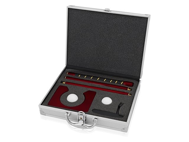 Офисный набор для гольфа включает все необходимое для игры во время обеденного перерыва или свободной минутки в офисе. Набор размещается в стильном алюминиевом кейсе.