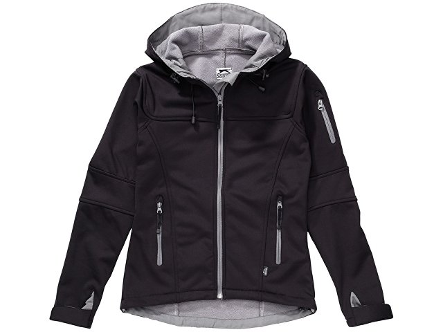 Женская куртка софтшел Match. Свободный покрой. Водонепроницаемая куртка Софт Шел. Дышащий. Стягивающийся капюшон на эластичном шнурке со стопперами. Передний карман и карман на рукаве на обратных молниях. Регулируемые манжеты на липучках. Завязки со стопперами внизу. Сзади длиннее чем спереди. Принт Slazenger возле левого кармана. Однослойная джерси гладкого переплетения из 100% полиэстера со 100% микрофлисом. 360 г/м².