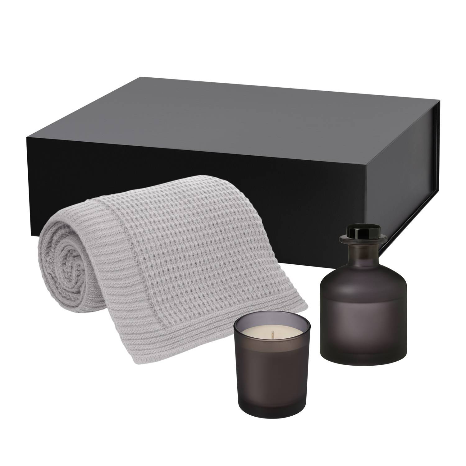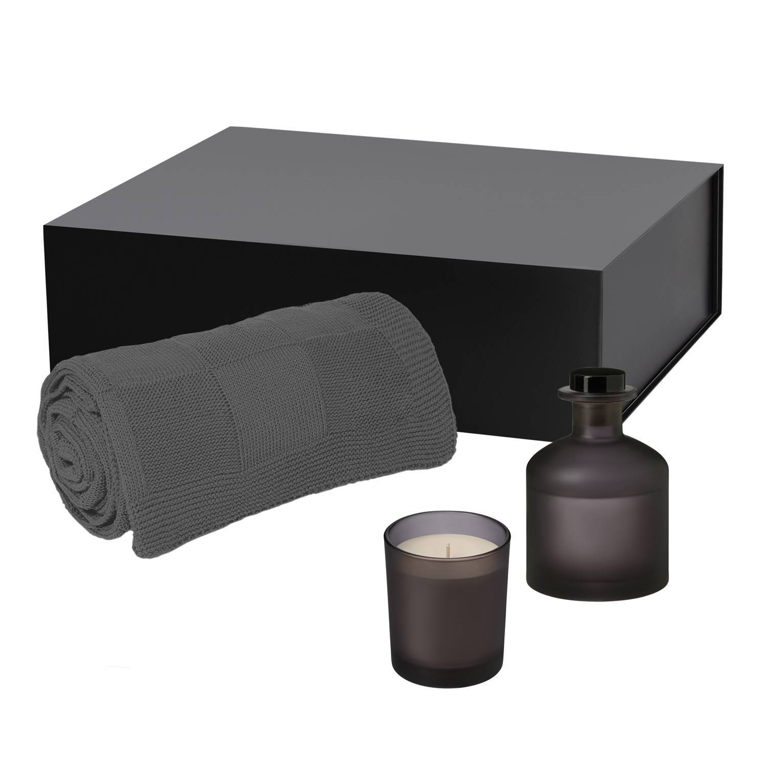 Подарочный набор Enigma, Malta Soft, серый (свеча, диффузор, плед)