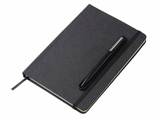 Набор блокнот А5 с магнитным держателем для ручки и подставкой для телефона и металлической шариковой ручкой "NotaBene", черный
