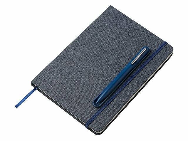 Набор блокнот А5 с магнитным держателем для ручки и подставкой для телефона и металлической шариковой ручкой "NotaBene", темно-синий