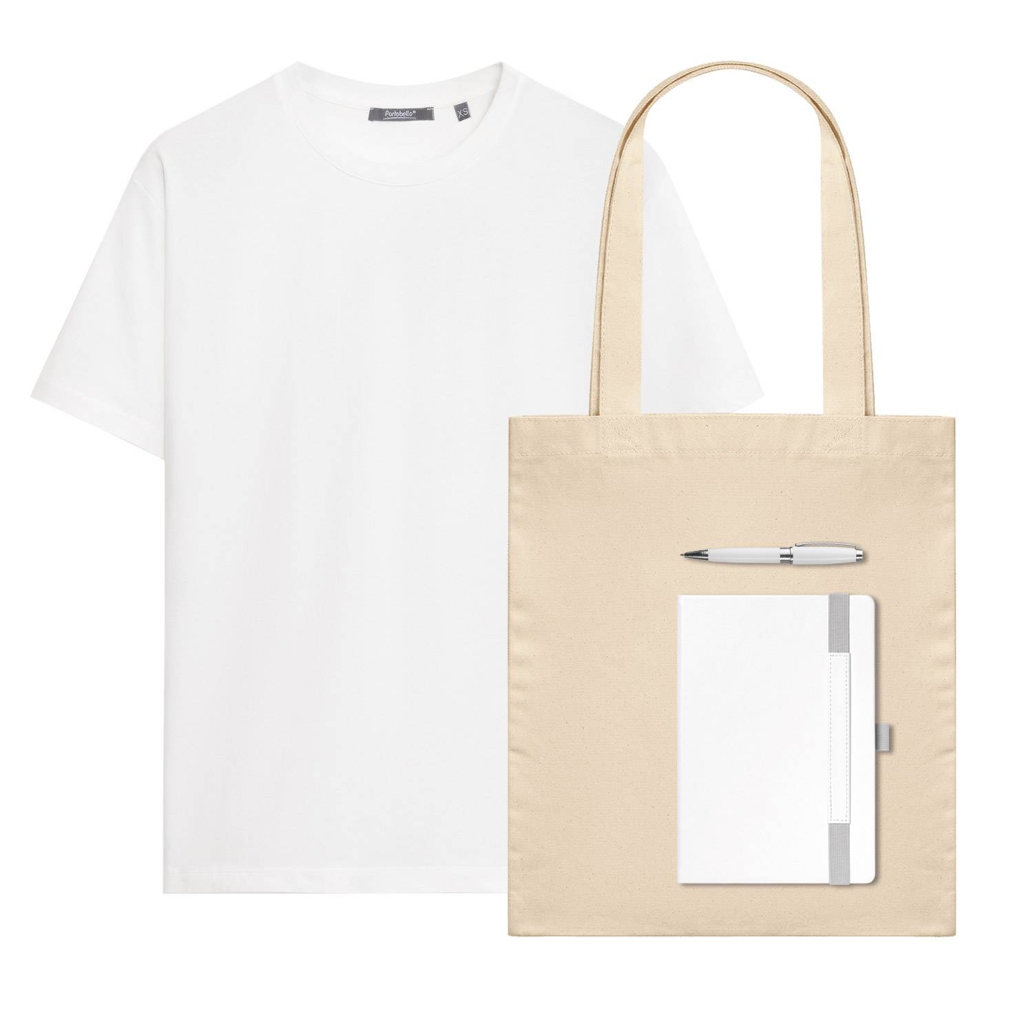 Набор с одеждой KRIS (футболка, ежедневник, ручка, шоппер), белый, XL