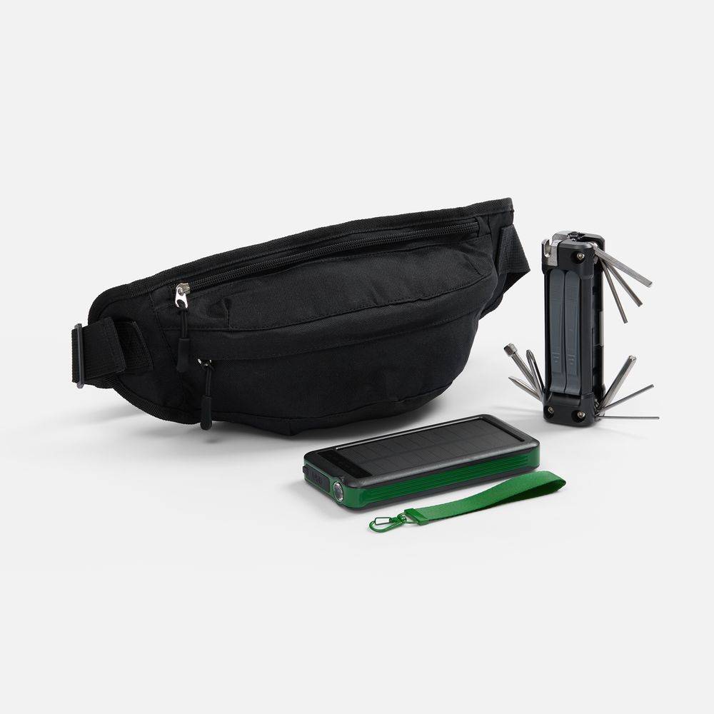 В комплекте — ударопрочный аккумулятор с фонариком, универсальный мультитул для быстрого ремонта велосипеда или самоката, а также практичная сумка.