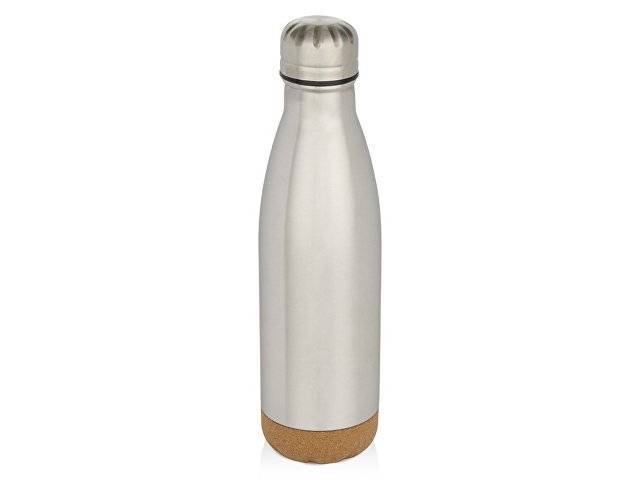 Бутылка для воды Cove из нержавеющей стали с двойными стенками и вакуумной изоляцией, объемом 500 мл, с пробковыми деталями - Matted silver