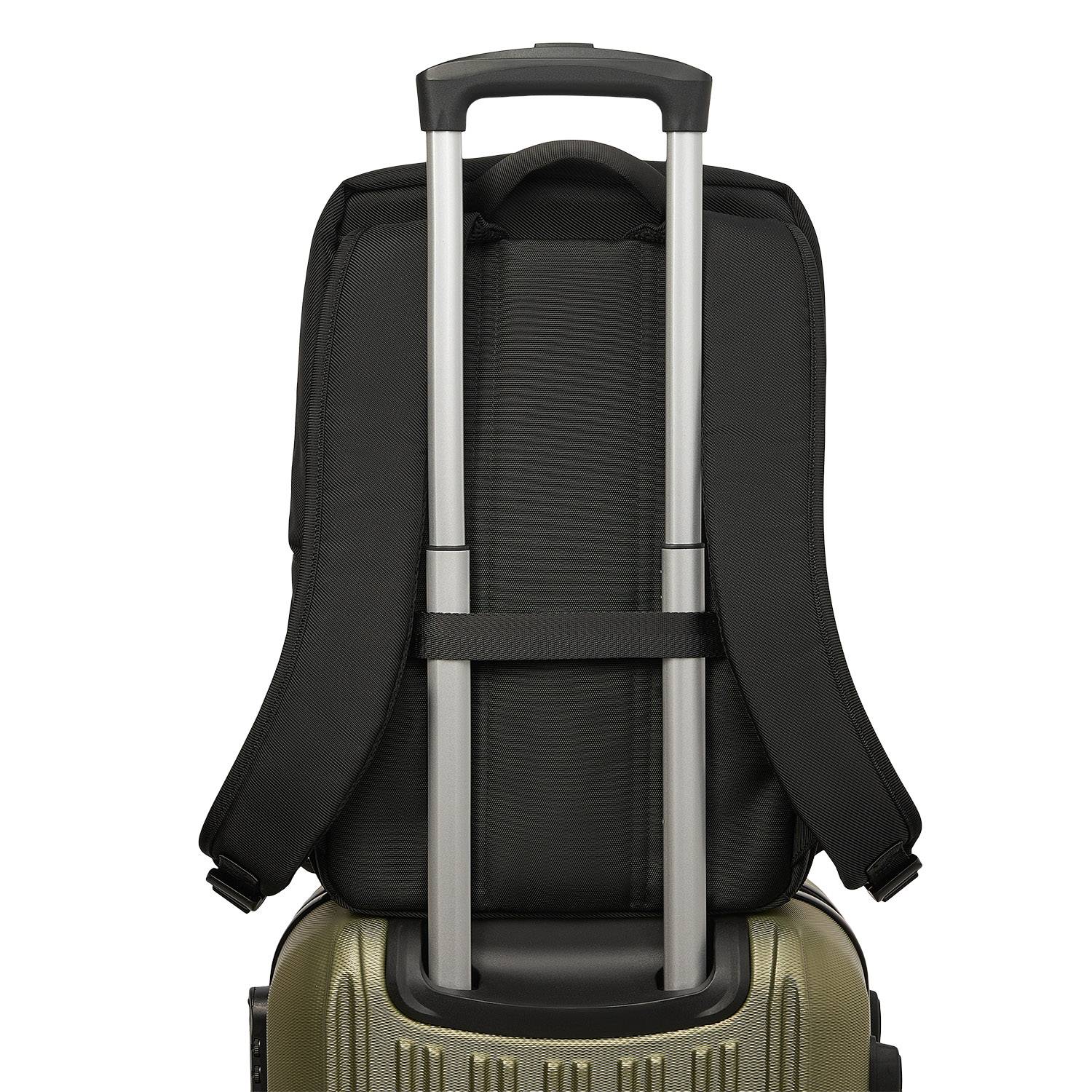 Рюкзак имеет две мягкие регулируемые лямки, комфортные для ношения. Есть багажная лента на спинке для большего удобства в поездках. Изготовлен из высококачественного водоотталкивающего полиэстера 1000D с усиленной пропиткой – он устойчив к износу и легко очищается от загрязнений.