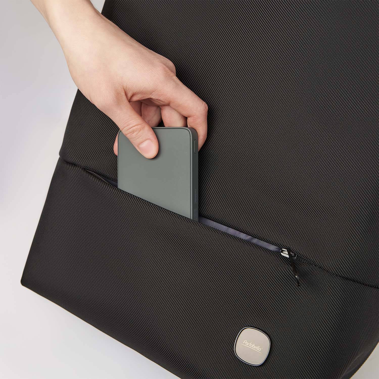 В основном отделении есть уплотнённый глубокий карман для ноутбука (до 15,6") и два органайзера для вещей. Внешний карман на молнии подходит для хранения важных мелочей: ключей, кошелька и наушников.