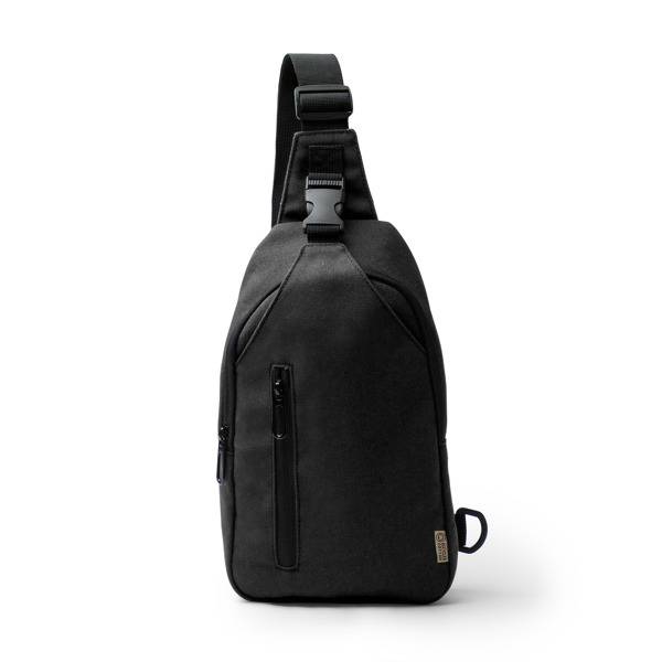 Сумка на плечо из переработанного хлопка. Регулируемый ремень с карабином, а также две точки крепления на концах для большего комфорта в использовании. Основное отделение с застежкой-молнией и двумя меньшими внешними карманами, один с застежкой-молнией, а другой с пряжкой. Мягкая задняя панель.