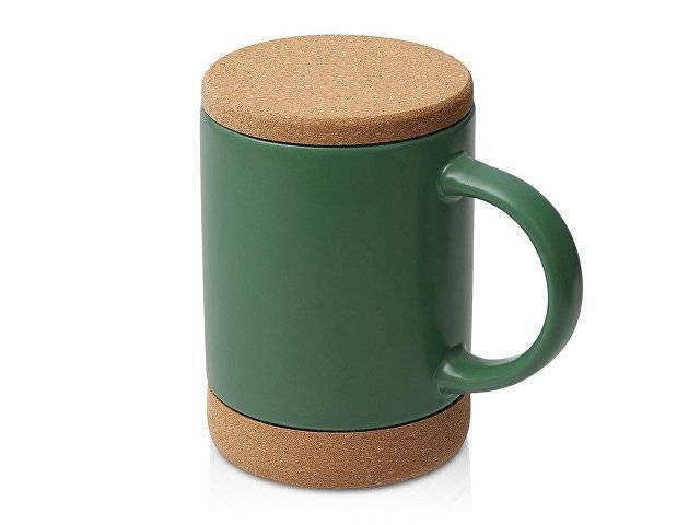 Кружка 450 мл с пробковым дном с крышкой "Корк & Бон", глубокий зеленый