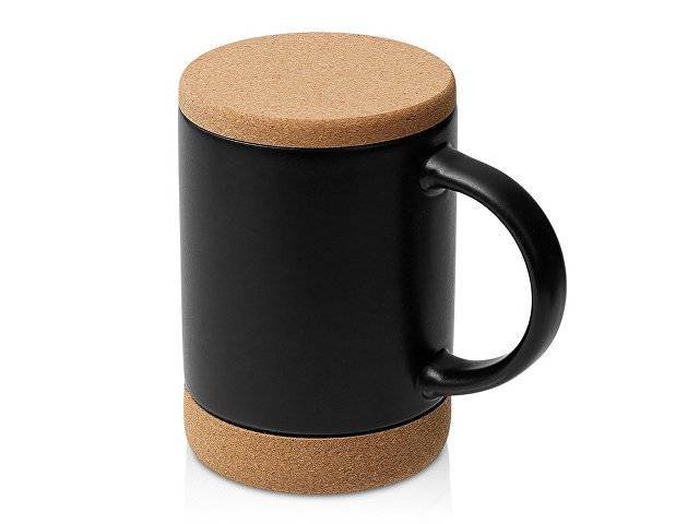 Кружка 450 мл с пробковым дном с крышкой "Корк & Бон", черный
