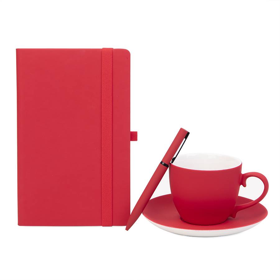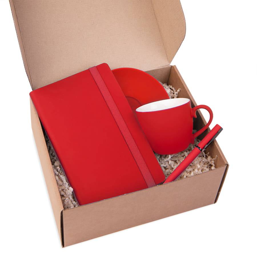 Подарочный набор T-TIME: бизнес-блокнот, чайная пара, ручка шариковая, коробка и стружка, красный