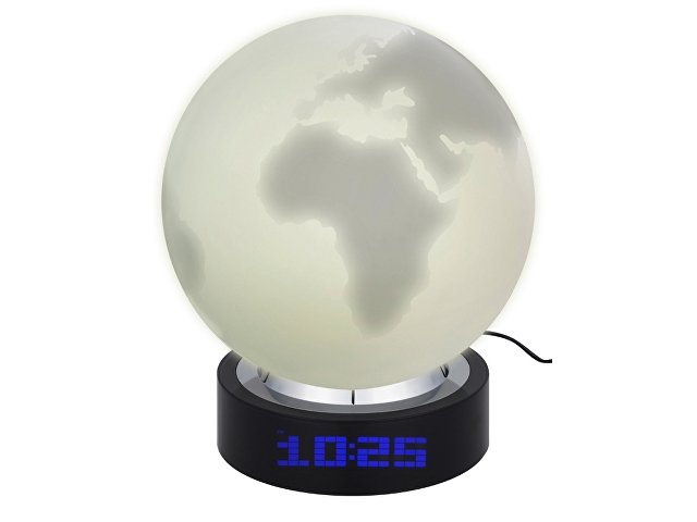 Многофункциональная настольная лампа из белого матового стекла со стилизованным изображением земного шара станет замечательным подарком всем путешественникам. Лампа прекрасно дополнит интерьер туристического агентства, а встроенные часы, термометр и календарь – дополнительный бонус к такой оригинальной вещи.