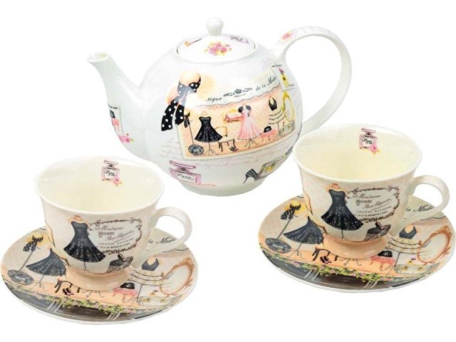 Оригинальный чайный сервиз рассчитан на две персоны. В набор входят пара чашек, блюдец и небольшой чайник. Чайный сервиз станет непременным атрибутом женских посиделок. Упакованный в симпатичную подарочную коробку, сервиз непременно понравится прекрасным леди.