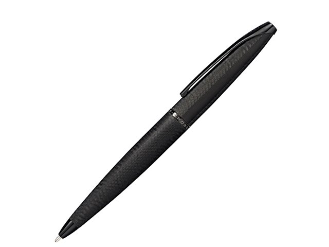 Шариковая ручка Cross ATX Brushed Black PVD с гравировкой, полированным покрытием черного цвета и поворотным механизмом.