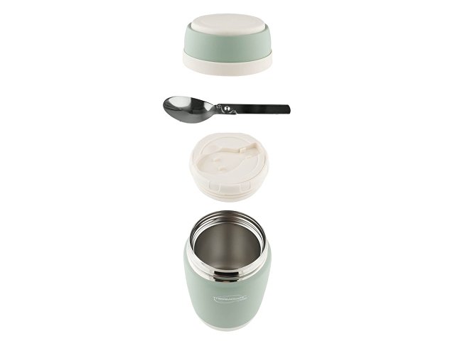 Термос для еды с широким горлом изящной эргономичной формы и с бархатистым покрытием станет не только прекрасным хранилищем для вашей еды, но и подарит удовольствие от владения столь стильным аксессуаром. Термос укомплектован складной ложечкой и подходит для хранения жидких и твердых блюд. Идеальный подарок для тех, кто заботится о правильном и полезном питании. Крышка может использоваться как чашка или мисочка.